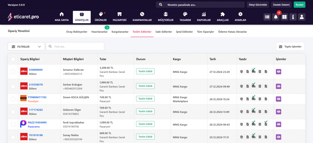 Başka hiçbir yazılımı ihtiyaç duymadan, tüm e-ticaret operasyonu süreçlerinizi tek panelden yönetebileceğiniz harika bir alt yapıyı sizlere sunuyoruz.