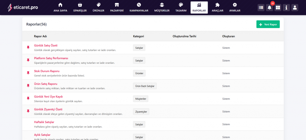 E-Ticaret sitenizdeki ve diğer kanallardaki tüm siparişlerinizin raporlarını dilediğiniz gibi görebilir ve dışarı aktarabilirsiniz.
