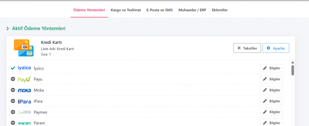 İyzico ödemeleri artık altyapımızdaki kredi kartı formu ile yapılabilmektedir. “İyzico İframe” kullanmak yerine “Araçlar -> Ödeme Yöntemleri” sayfasından “Kredi Kartı” başlığından İyzico’yu aktif edebilirsiniz. İframe’den direkt ödeme yöntemine geçerken taksit bilgilerini “Kredi Kartı -> Taksitler” alanından doldurmanız gerekmektedir.