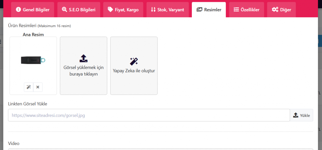 Ürün görselleri alanlarına sürükle / bırak desteği eklendi. Bu özellik sayesinde görselleri kolayca yükleyebilir ve sürükleyerek sıralamalarını değiştirebilirsiniz.